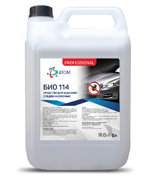 Купить БИО 114 (5л) ср-во для мытья стекол от следов насекомых недорого - цена в интернет-магазине Атом