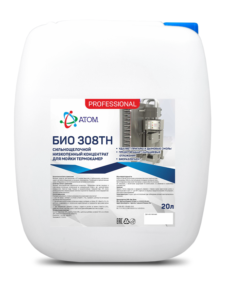 Купить БИО 308 ТН Моющее средство щелочное 10л недорого - цена в интернет-магазине Атом